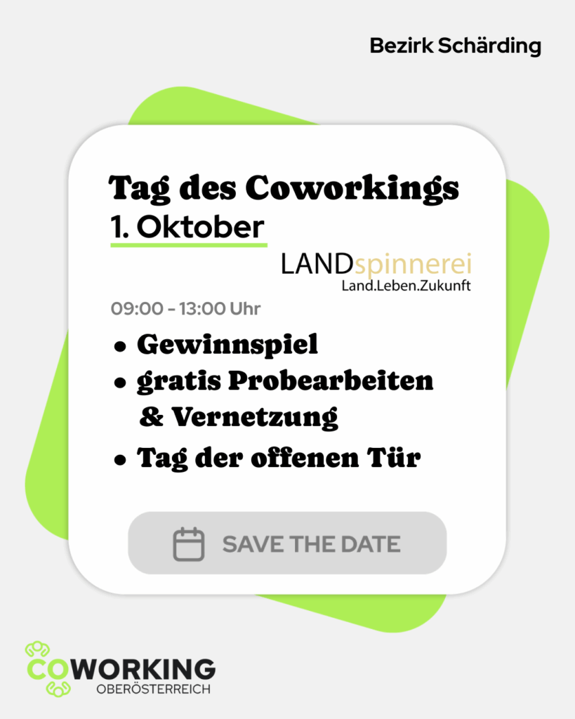 Auch die Landspinnerei ist dabei – am Mittwoch, 1. Oktober 2025 ist Tag des Coworkings!